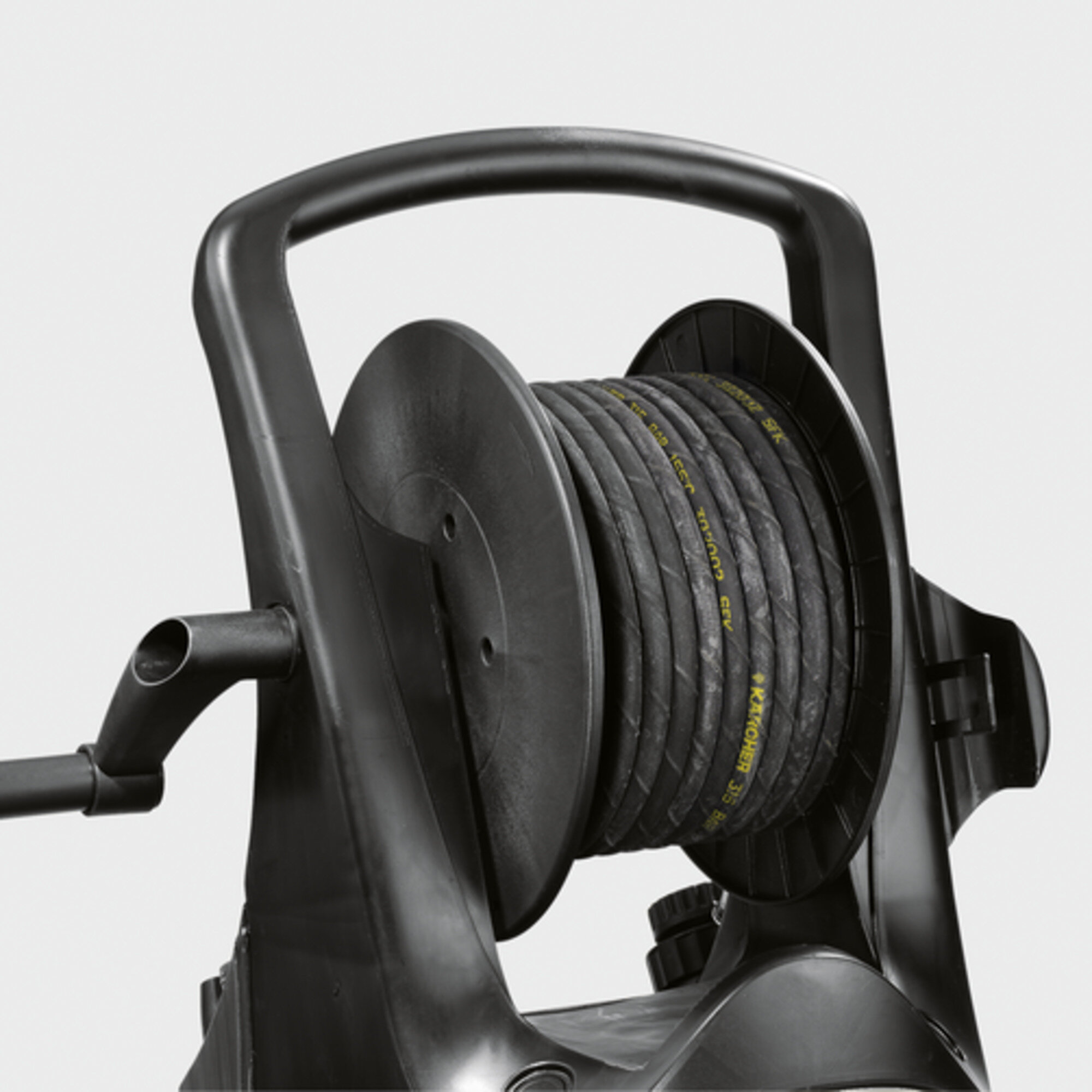 کارواش صنعتی دارای قرقره شلنگ که جهت جمع کردن 20متر شلنگ فشار قوی تعبیه شده است که این مزیت حمل و نقل محصول را راحتتر می نماید .